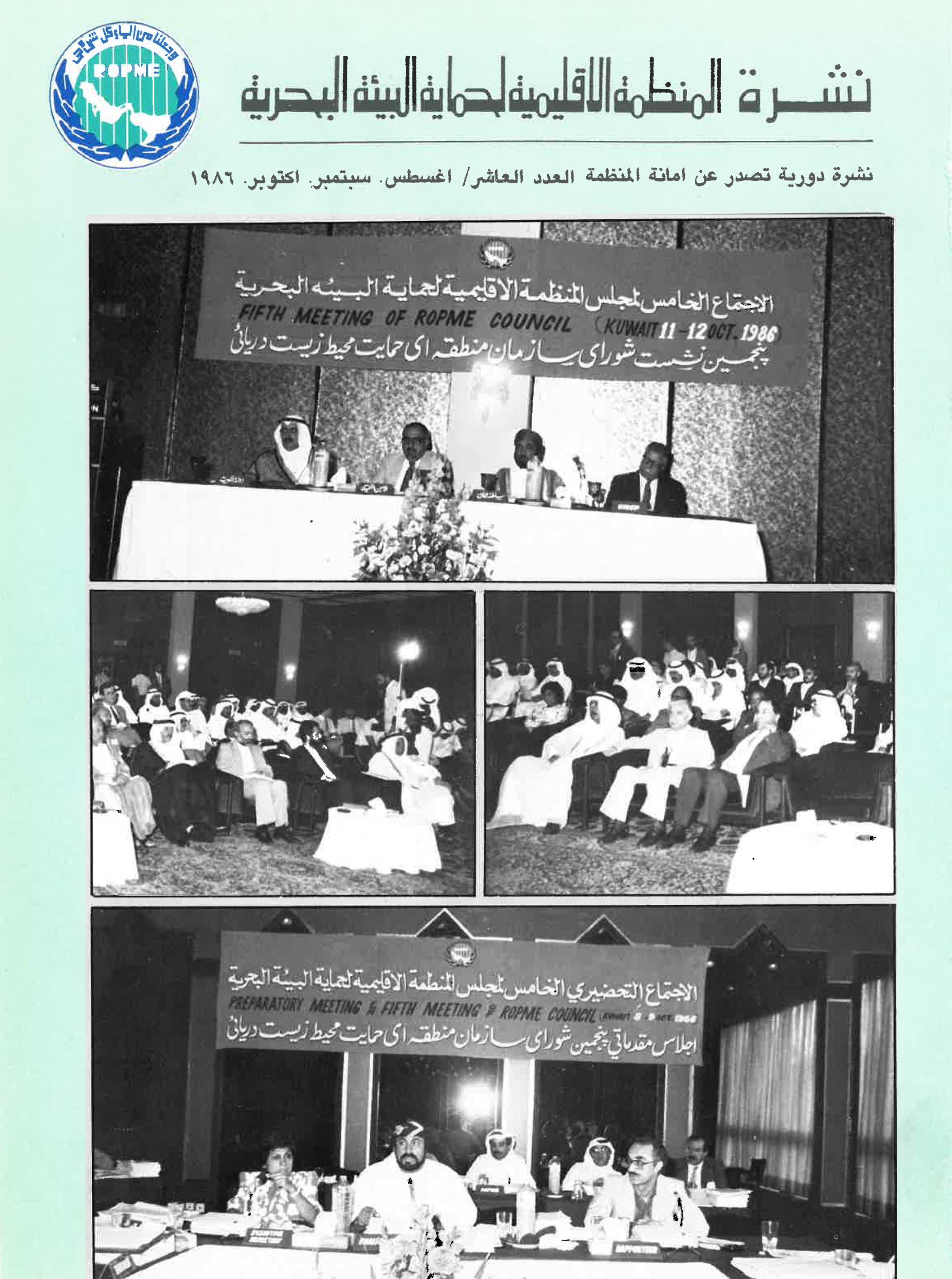 وتطبيقاً للقرار الذي صدر عن اللجنة التنفيذية في أبريل 1986 بإجماع الدول الأعضاء بالمنظمة، انعقد الاجتماع الخامس لمجلس المنظمة الإقليمية لحماية البيئة البحرية في فندق هيلتون بدولة الكويت في الفترة من (11-12 أكتوبر 1986).