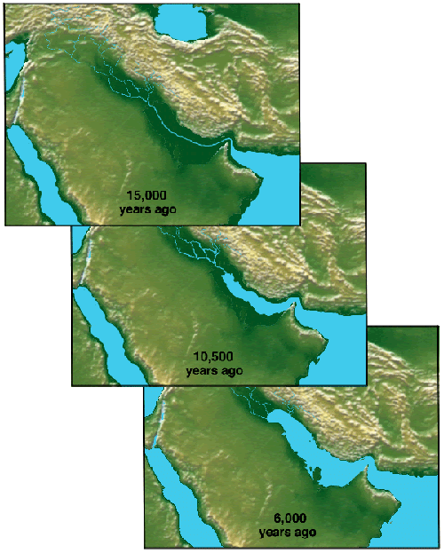 Over millions of years, huge volumes of sediments were deposited into the northern parts of the basin, particularly from the Tigris & Euphrates in the Shatt al-Arab river system. The northern RSA became a deltaic zone, filled with fine-grained muds and clays. The seafloor is extremely shallow in this area, with depths often less than 10 meter.
