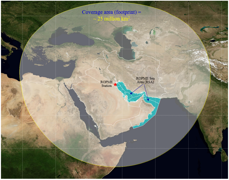 This station, like its predecessor one, serves as the leading and top operated ground station in the ROPME Sea Area, as it operates 24 hours a day, seven days a week and freely distributes satellite data primarily to the concerned environmental authorities and stakeholders in the region. The coverage area and footprint of the ROPME ground station is about 25 million square km (within a radius of up to 2800 km of the station site). Accordingly, this station can acquire a satellite image not only covering the ROPME Sea Area, but also distant areas like Caspian Sea, Red Sea, eastern Mediterranean and Black Sea (see attached coverage map), if needed.