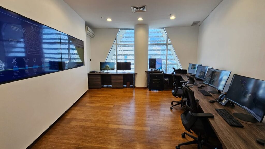 A panoramic view for the control unit of the new ground receiving station at the new ROPME’s Headquarters in Granada area, Kuwait.
